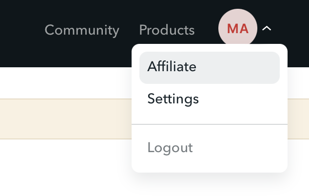 Once you login to your customer account, you just need to click on your avatar and select Affiliate