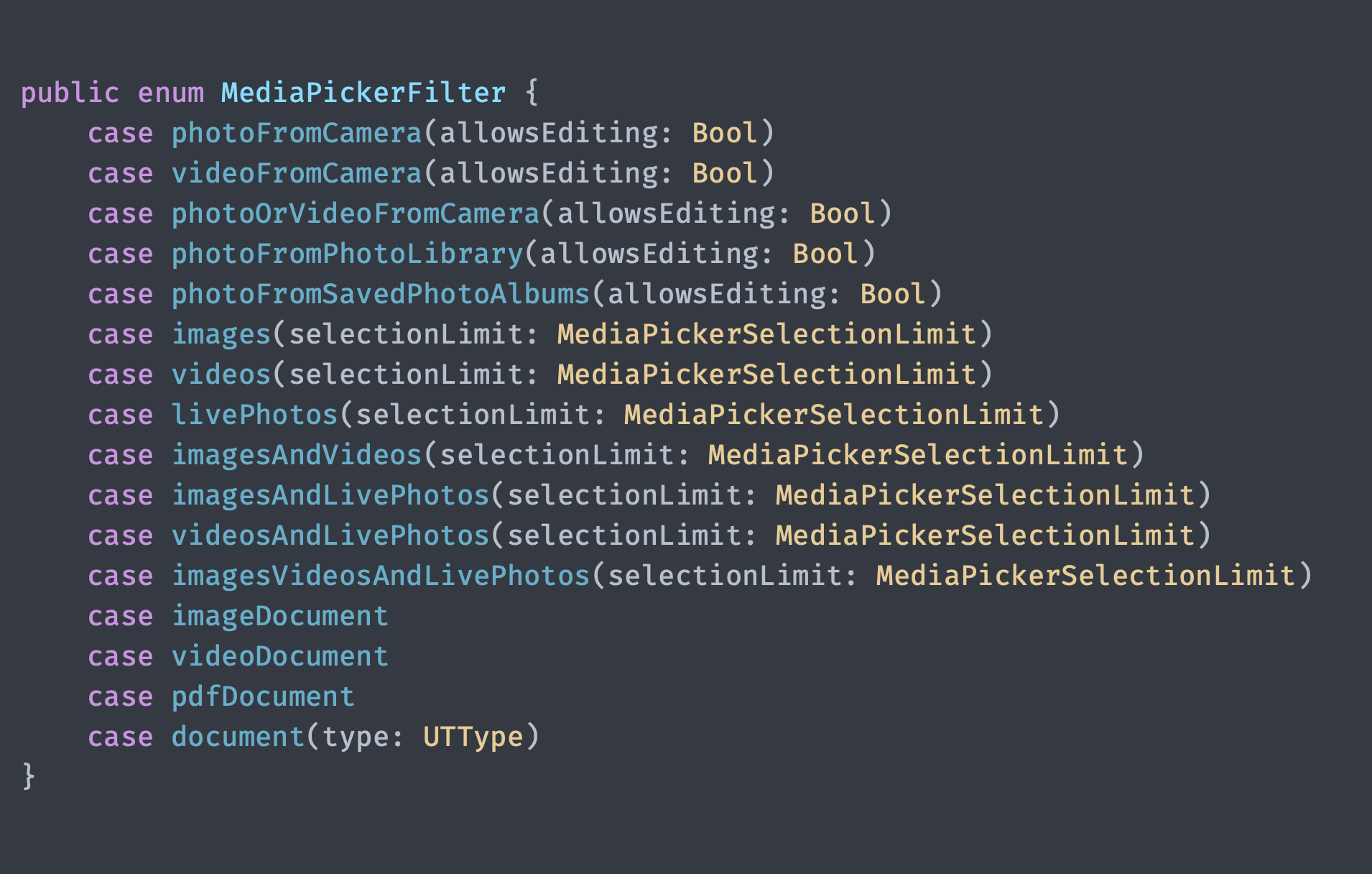 Whatever your picker needs there's a MediaPickerFilter for that. Yes, even any type of document (ex. audio, mp4, png, ico, svg etc.)
