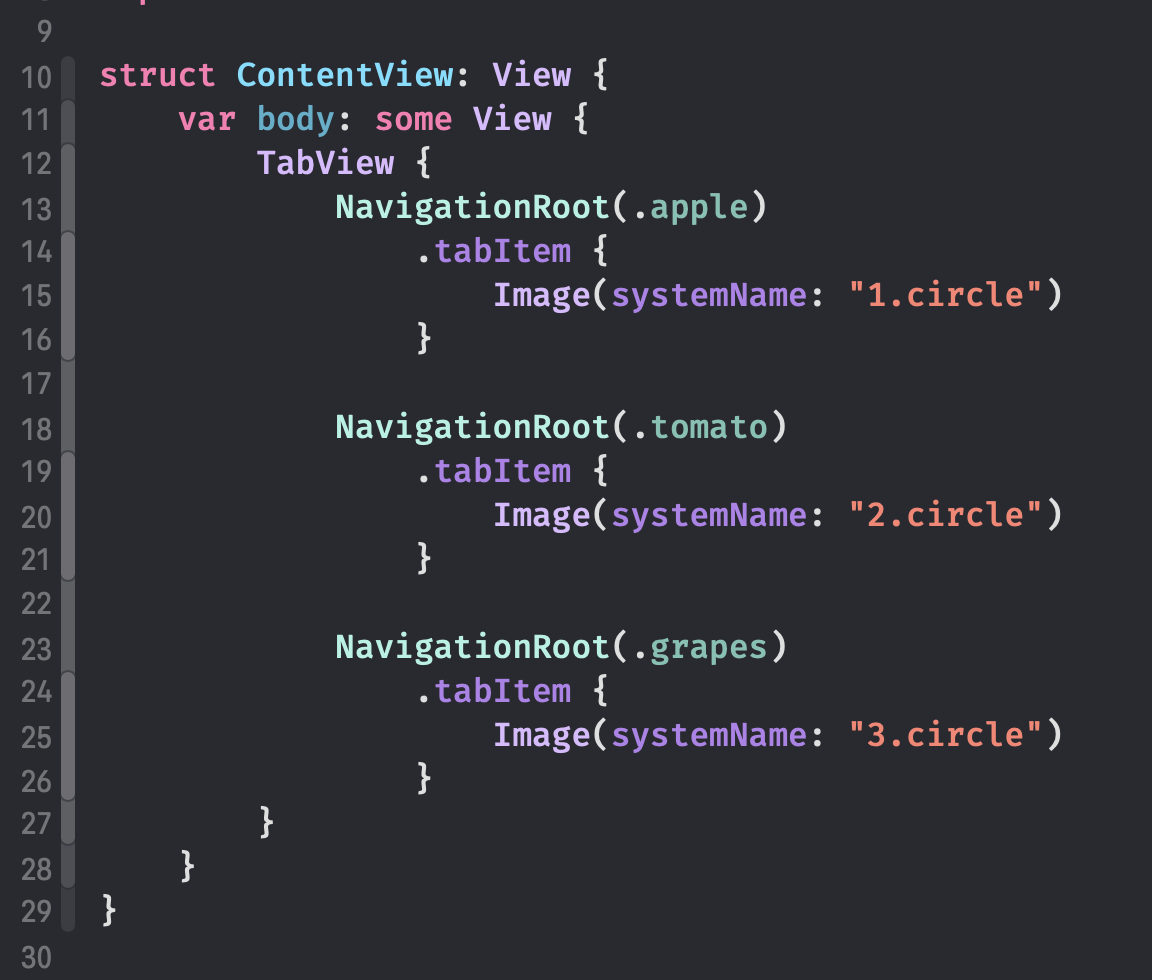 Instead of TabView use TabNavigationRoot. Choose the initial tab to be shown.
